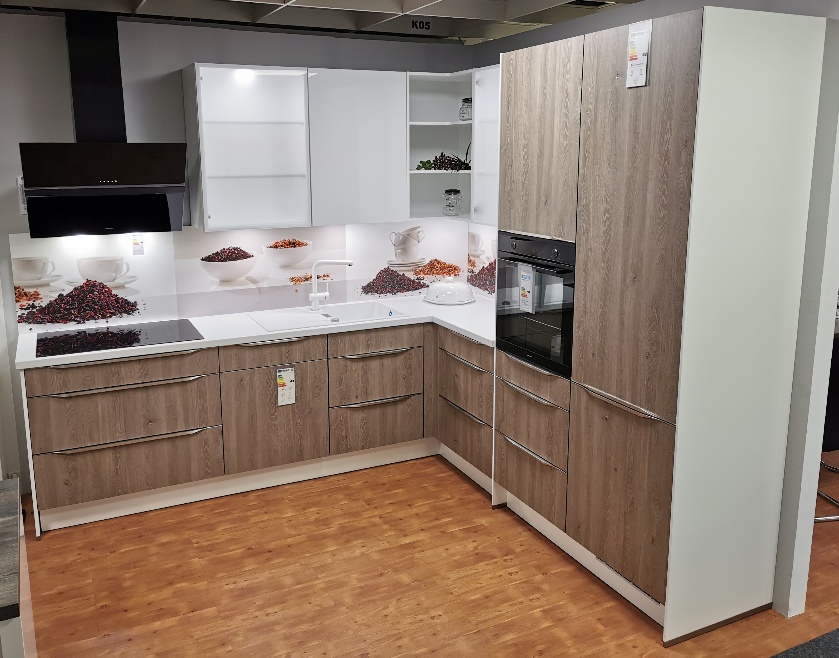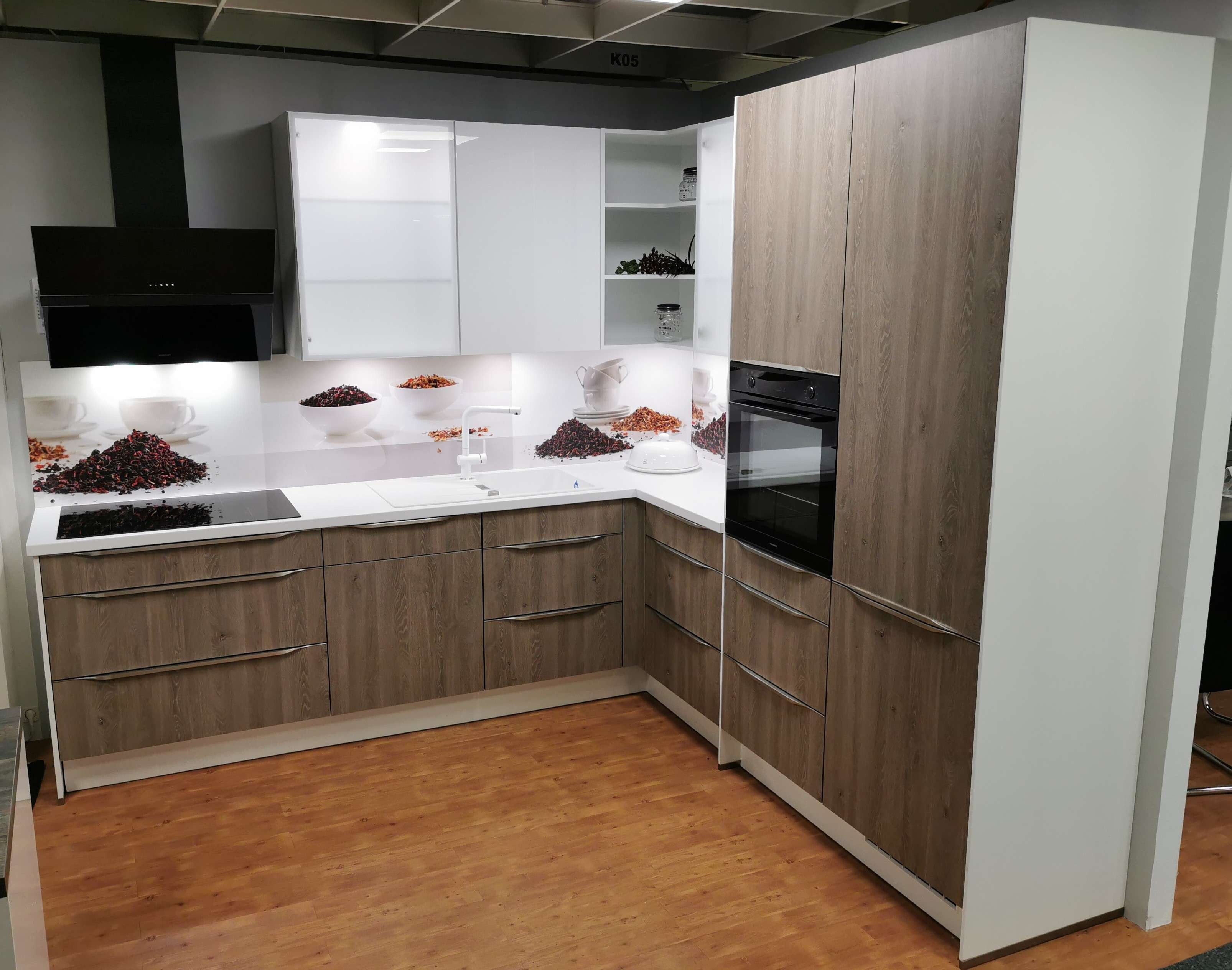 Diese schöne helle Winkelküche bieten wir Ihnen zum kleinen Ausstellungpreis an.