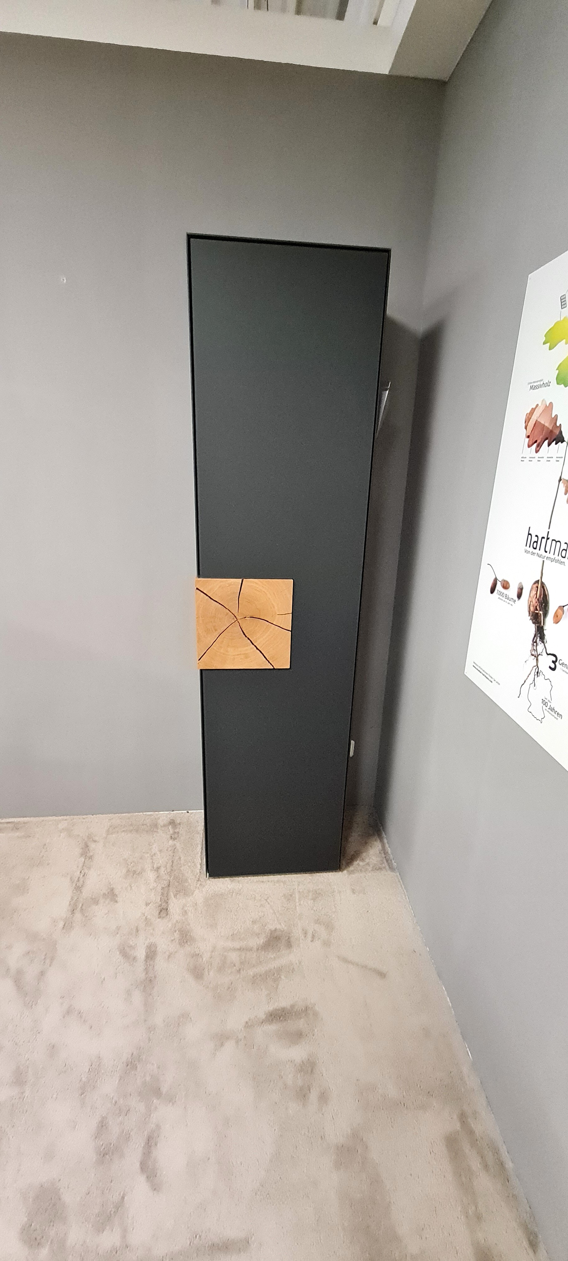 Hartmann-Standvitrine-Caya-Applikation Mattglas anthrazit